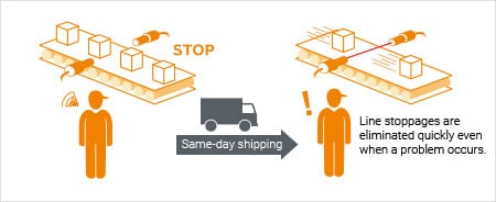 当一个问题导致生产线停止时,不仅生产突发大小降为零,而且需要对生产计划进行重大更改,以恢复生产中的延迟。这就导致了由于劳动力成本和与变更计划相对应的公用事业成本等因素造成的损失。因此,从问题中恢复哪怕是1分钟或1秒的速度都是非常重要的。也有修理困难的情况,需要立即运送或更换替换设备。在这种情况下,关键是公司是否有库存设备,并能立即响应这种需求。