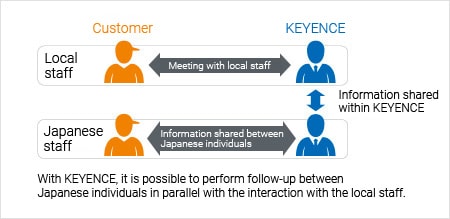 在KEYENCE,我们已经建立了一个系统,可以提供快速的支持,在国内和海外的位置安排专门从事图像处理的工程师,以回应客户的意见,如上述所列。在购买产品后,我们不仅会提供操作说明、研讨会和售后支持,还会根据需要及时发货更换设备。我们的支持系统覆盖整个日本。此外,通过在世界各地建立设施,从北美和中美洲网络的30多个设施开始,还包括欧洲、中国、亚洲、中东、大洋洲和非洲国家,我们已经实现了与我们国内相当的支持系统。